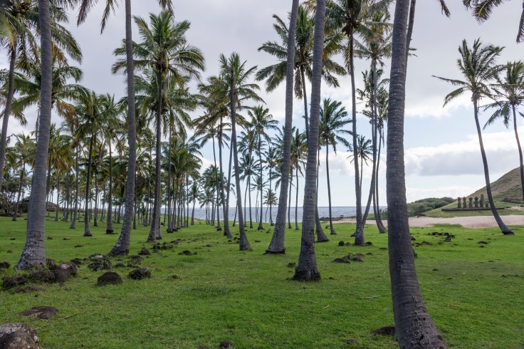 El primer lugar reseñable de la costa norte son los petroglifos de Papa Vaka, que son los más grandes de toda la isla. Estos dibujos esculpidos en la roca, representan la fauna de la isla (acuática fundamentalmente) y el modelo de canoa con la que los ancestros llegaron por primera vez a la isla. Tras cruzar el Ahu Te Pito Kura (unas rocas redondas y pulimentadas que se usaron como fuente de energía espiritual) giramos a la derecha hasta llegar a la playa de Ovahe. El descenso a esta playa es peligroso y creo que no está permitido, pero las vistas son salvajes. La última parada es la playa de Anakena (la única playa de arena junto con Ovahe). Está plagada de palmeras y la adorna el Ahu Nau Nau.