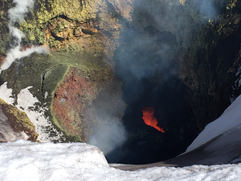 El día del ascenso al Volcán comienza por la mañana temprano, probándonos el equipo que llevaremos (botas, crampones, polainas, mono, piolets, casco, gafas de sol, guantes y mascarilla), para después dirigirnos a la entrada del volcán. Allí, se coge un telesilla que nos aproximó a la falda principal y comenzamos el ascenso.