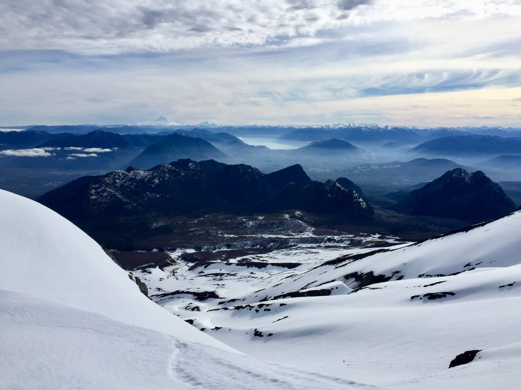 El interior del cráter es probablemente una de las cosas más inauditas que he visto en mi vida, salpicado de colores marrones, amarillos y verdes (por el azufre) combinados con el rojo incandescente de la cámara magmática principal. También se puede disfrutar de unas vistas espectaculares de los volcanes adyacentes, tales como Lanín, Quetrupillán o los Nevados de Sollipulli.